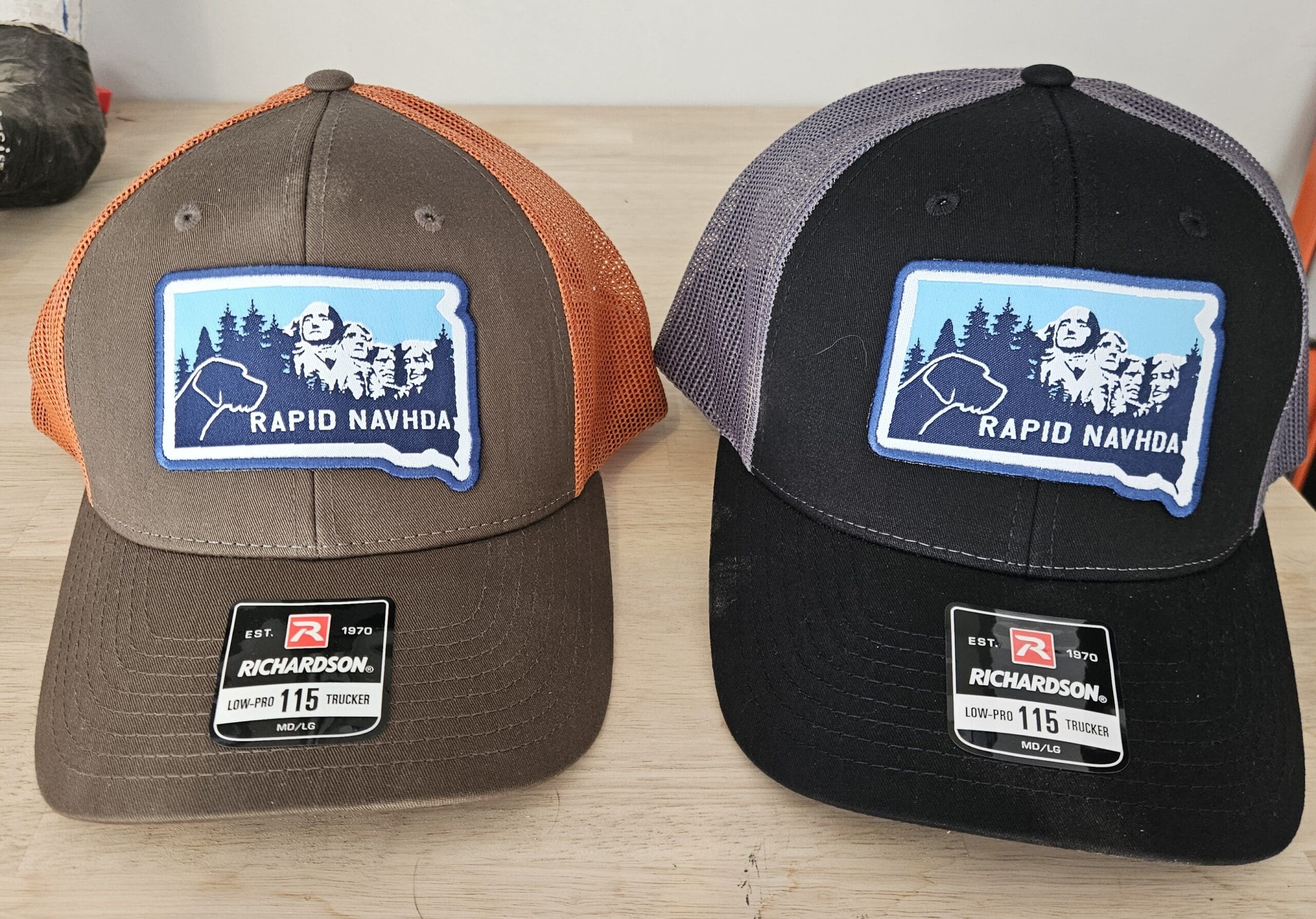 Premium Richardson 115 Low-Pro trucker hat featuring the embroidered Rapid NAVHDA South Dakota patch. Built for comfort, durability, and representing the versatile hunting dog community.
