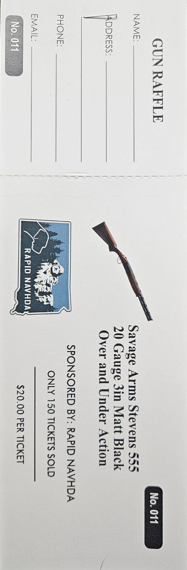 Enter the Rapid NAVHDA Gun Raffle for your chance to win a Savage Arms Stevens 555 20 Gauge Over and Under shotgun with a 3-inch chamber and matte black finish. This high-quality shotgun is a reliable and versatile firearm, making it a great option for upland hunters, sporting clays shooters, and outdoor enthusiasts.